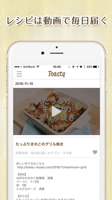 App Storeより引用簡単トースターレシピを動画で!完全無料のレシピアプリ TOASTY(トースティー)