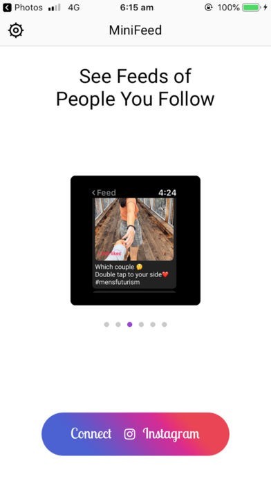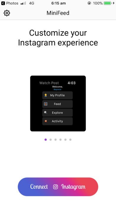MiniFeeds allows you to see feeds updated by your followings, explore area and updated notifications to your watch. Best way to have a glance yo photo posted by your friends or family in instagram, and updates for celebrities you follow.