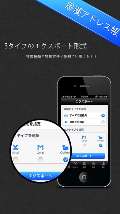 さまざまな形式に対応した連絡先バックアップアプリ