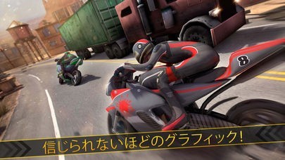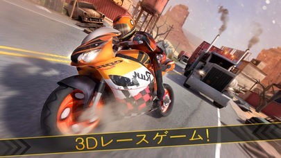 「日本 暴走 単車 レース - バイク レーシング スポーツ 3D」は、迫ってくるコンテナやトラックを上手く避けながら進んで行くバイクのレーシングゲームになっております。左右にフリックしていくだけと操作は簡単なので、どなたでもプレイできます。キャラクターもいくつか用意されているので、気に入ったものを選択します。障害物にあたっても無効になるアイテムなども道中には置かれているので、上手に使いながらミッションを達成すると楽しいです。