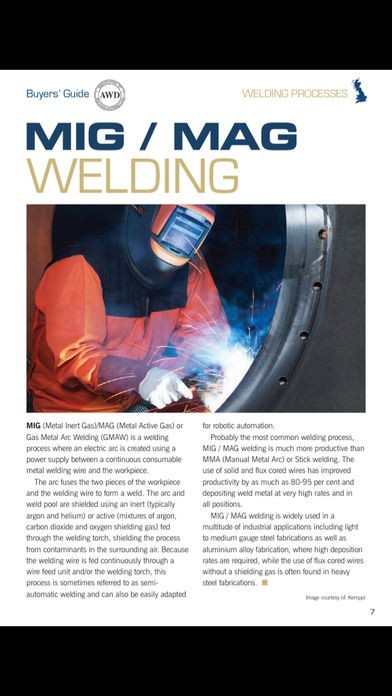 App Storeより引用Welcome to Welding World the magazine sponsored by the AWD (Association of Welding Distribution) the magazine for Welders, End Users, Distributors, Wholesalers, Importers and Manufacturers. Here you will find all the details you will need to help you make the most of contacts and information from within the Welding Industry.