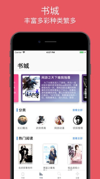 韩寒,张爱玲,琼瑶,春上春树,金庸,张小娴,巴金,莫言,郭敬明,鲁迅,黄易,矛盾,古龙,莫言等。。。各类名家作品随你挑。