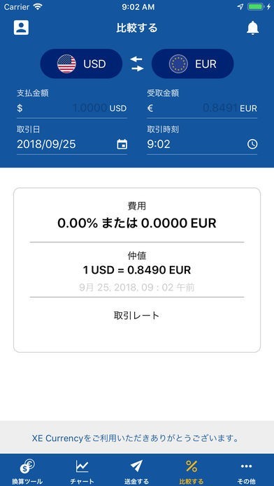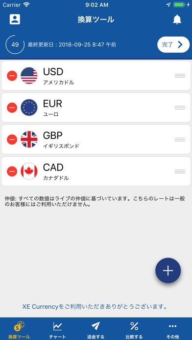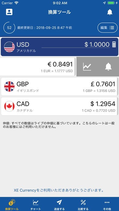 XE 通貨換算ツール&為替レート計算機のスクリーンショット
