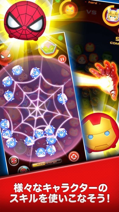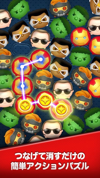 マーベルヒーロー達がツムツムに!派手なアクションで自在にツムを消すことができれば、心を落ち着かせることも可能