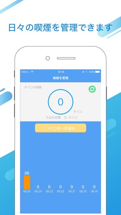 - 毎日の記録をトラッキングして、日々の喫煙を管理できます。