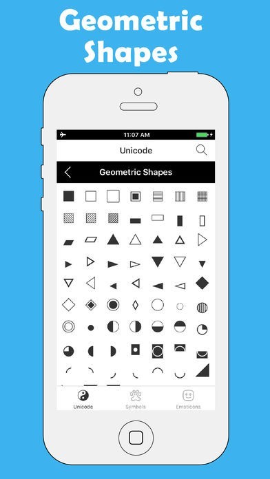 アプリで使える特殊文字はなんと全部で5万以上です。形、シンボル、矢などから自分の好きなものを選ぶことができます。選択肢が多いので、色んな使用シーンでお目当ての文字が見つかるでしょう。