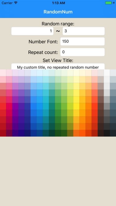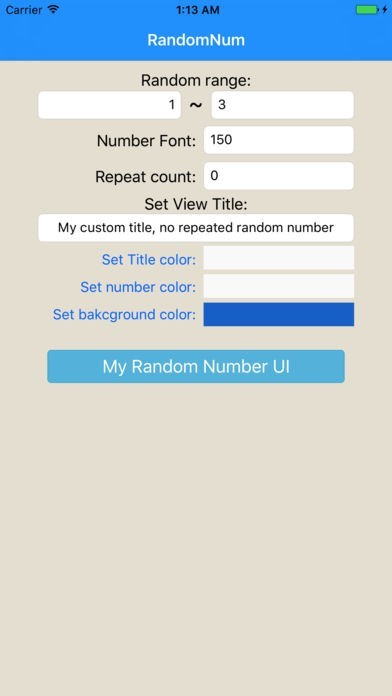 App Storeより引用乱数、自分でインタフェースのカスタム。あなたは、カスタムおランダムテンキーUI。カスタムタイトル、カスタムタイトルの色、カスタム数値フォント、カスタム数値色することができます。これは、クールなランダムな番号です。そして、あなたは何の繰り返し数を一般的な設定はできません。