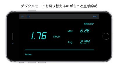 GPS表示であなたの現在の速度を計測するアナログ速度計のツールです。最高速度と平均速度を計測します。あなたの2つ目の便利ツールは車の運転や自転車に最適です。