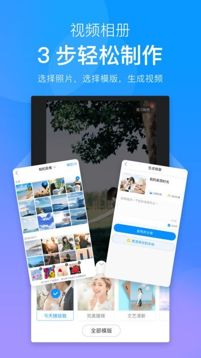 * 一键套用,三步轻松制作精美音乐相册、视频相册、电子相册、短视频、朋友圈视频、微商相册、企业宣传相册、贺卡邀请函等;