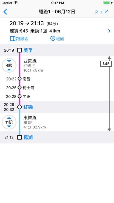 香港旅行に必携! 「乗換案内 香港」は香港メトロ専門アプリとなっており、旅行の際に現地で役立つ機能が充実しています。 乗り換え案内機能を搭載し、出発駅と到着駅を指定するだけで経路の探索が可能。 どの路線を利用するかの案内だけではなく、運賃や必要時間なども一緒に表示してくれます。 ネット環境が確保できない海外旅行で利用しやすいオフライン機能があるのも嬉しいポイント。 香港旅行は初めてという方や、現地のメトロには乗ったことがないという方でも安心して利用できちゃいます!