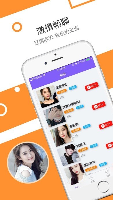 App Storeより引用不想每晚寂寞无聊,快来同城交友吧~附近帅哥美女都在这里,让你上一秒小姐姐,下一秒探探高颜值小哥哥,聊骚,就是这么简单~