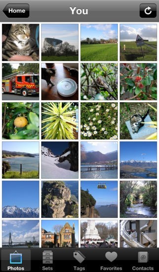 • BROWSE all of your own photos, your contacts' photos and any other public photos, including favorites, tags, sets, groups, interesting photos and more.