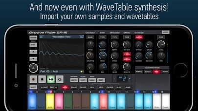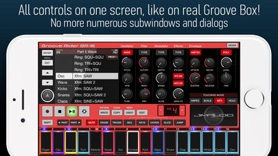 One remarkable feature of GR-16 is that all the controls are arranged on one screen, just like on a real groove box device! It lets you access almost all useful parameters from the one screen. Forget about numerous sub-windows and dialogs, which ruined your inspiration in another musical apps! Groove Rider is the fastest path from your imagination to reality!