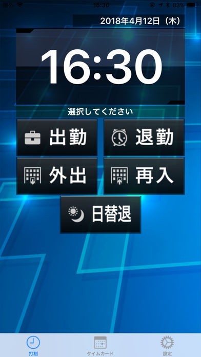 時刻を位置情報と共に記録することができ、見やすいタイムカード画面で日々の記録を確認することができます。