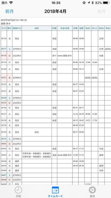 ・記録した時刻をタイムカード形式で月ごとに閲覧