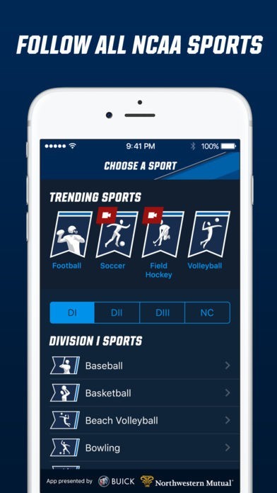 The NCAA Sports app is presented by Buick and Northwestern Mutual, Official Corporate Partners of the NCAA.