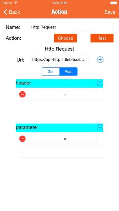 - Send Http Request with your config to control other service or devices ( IoT device, littlebits cloudbit )