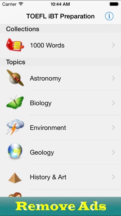 TOEFLで出題される科学や歴史といった専門科目の英単語を単語帳形式で暗記できるアプリ