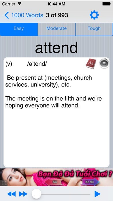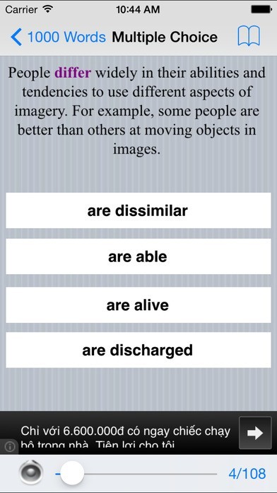 「TOEFL iBT Preparation」では、TOEFLに出題される歴史や科学等の専門科目等で使用される英単語をたっぷり詰め込んだアプリです。クイズ形式も搭載されているので覚えたなと思った単語をクイズに挑戦すれば、覚えたつもりだった単語を炙り出す事が可能です。クイズを繰り返していけば本番でも単語を忘れないほど記憶する事が出来るでしょう。また、単語には強調も表示されるので発音時のイントネーションも学習することが出来る学習アプリです。