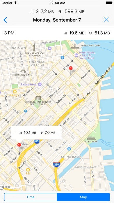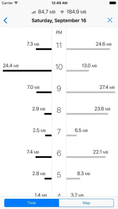 毎日のスマホのデータ使用量をチェックして、うっかり通信制限に入るのを防げます。
