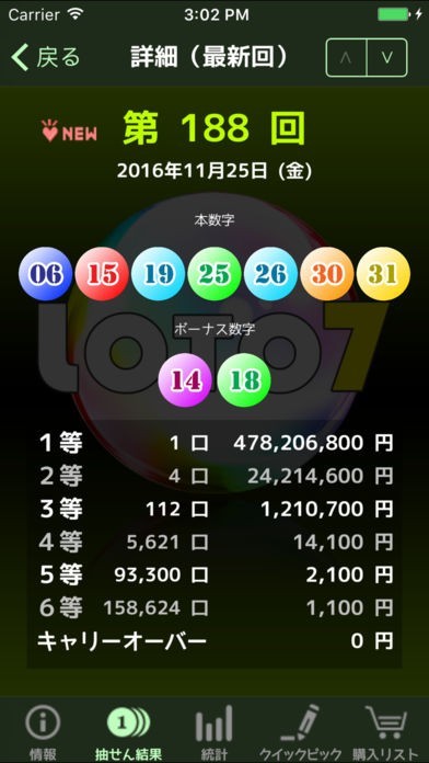 過去の抽選結果を全て収録している