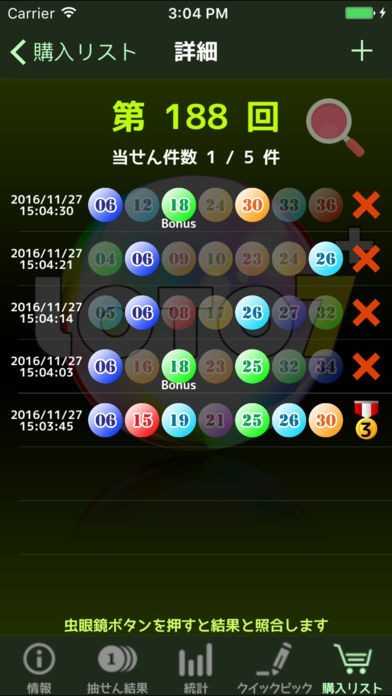 本アプリは統計情報を提供してくれるだけでなく、様々な条件を設定して番号を導き出すことも出来ます。そうした番号での購入が少額でも当選すれば予想が楽しくなるだけでなく、いつかは高額当選となることもあるかもしれません。