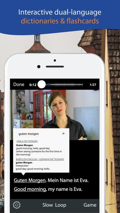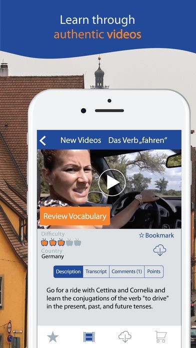 Yabla German is a video app for German learners who wish to improve their language skills. Authentic German videos include television programs, music videos, interviews, documentaries, and travel.