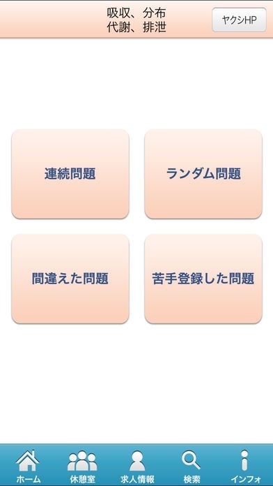 ・「検索」…好きなキーワードを入力して問題を検索できます。(100回、脳、アミノ酸…など)