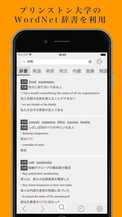 単語に関係する画像や関連する写真をリスト形式で表示させる事が可能です。検索したワードを履歴に保管出来るため、単語や熟語の意味を再チェックしたい時にも活躍しますね。