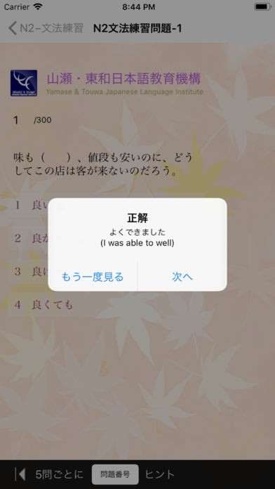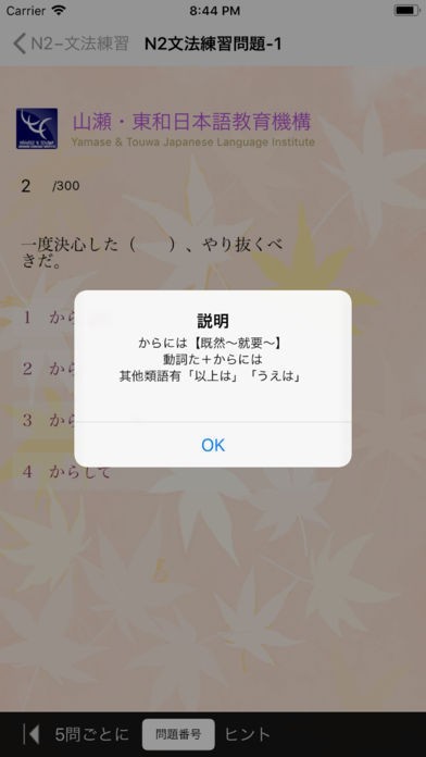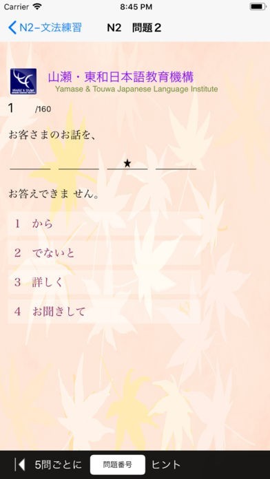 App Storeより引用1. 新しい日本語能力試験N2文法(言語知識)に合わせてを気楽に熟練できます。