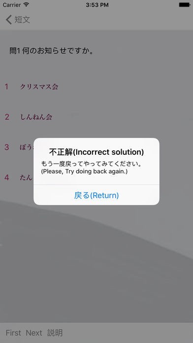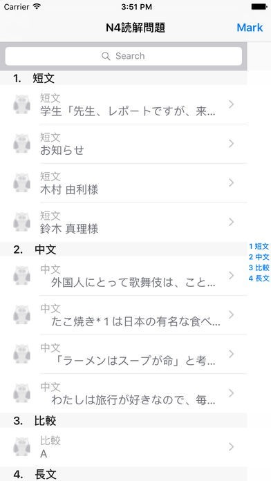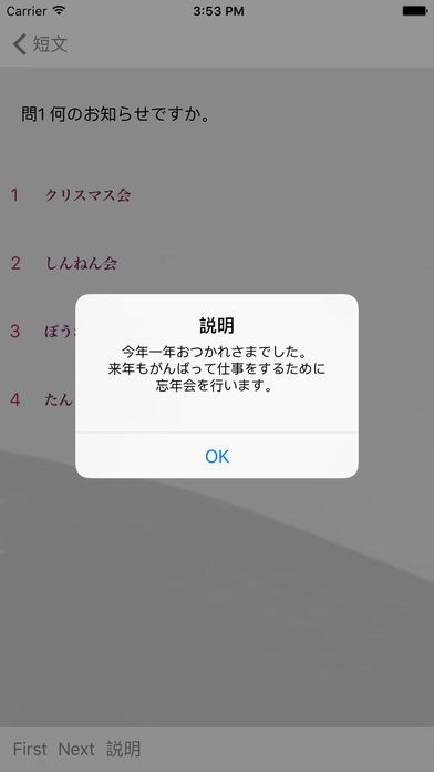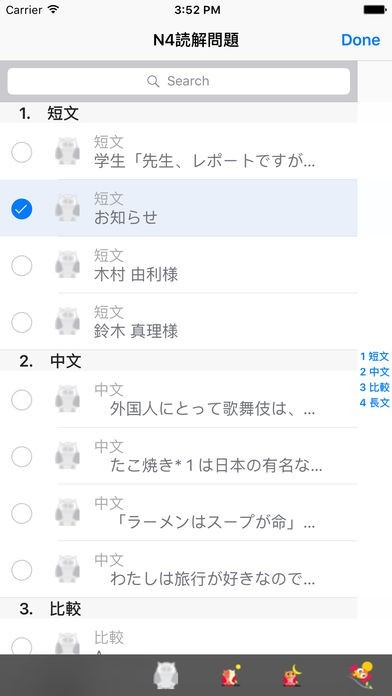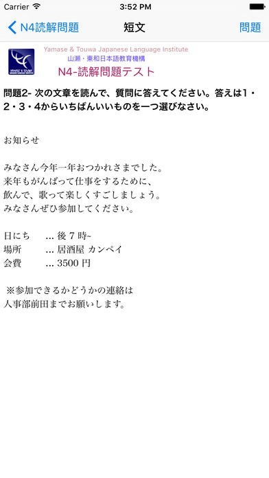 App Storeより引用1. 新しい日本語能力試験N4の読解に合わせて練習問題集。