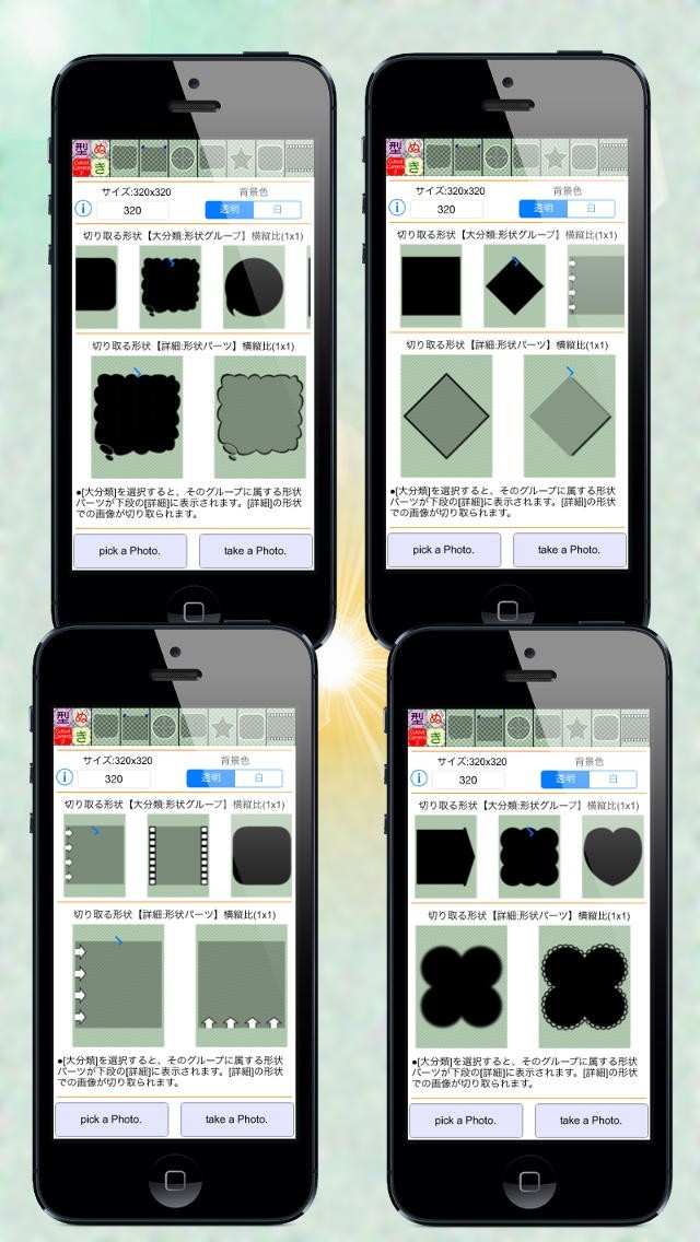 写真をいろんな形に型ぬき出来るカメラアプリです。アプリ内のカメラ機能を使う場合はフレームに合わせて撮影をし、カメラロール内の写真を利用する場合は切り抜きをします。フレームのデザインは、丸や四角といった一般的な形だけでなく吹き出し・花・ハートといった可愛いものも沢山あるので楽しめます。サイズは7種類用意されており、好みや用途に合わせて選べます。アプリで撮影した写真を加工する際に、仕上がった作品だけ保存するか元の写真も一緒に保存するかを自分で設定出来ます。