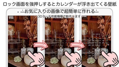 長押しするとカレンダーが出てくる仕様なので、オシャレな画像だけを表示させたいが、カレンダーを表示して利便性を上げたいときに便利です。表示速度やフォント、カレンダーの位置も選べます。