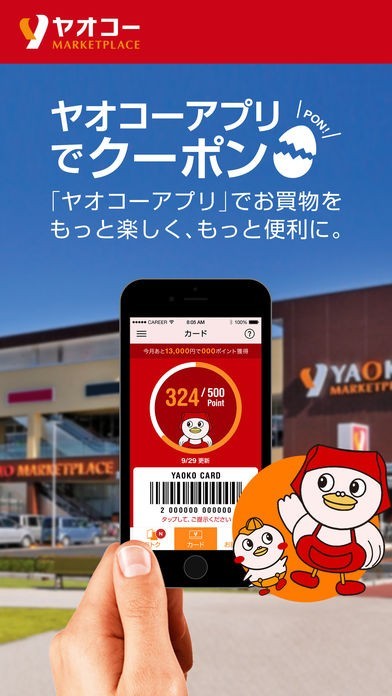 ヤオコーカード機能が搭載されているため、カード情報を一度登録しておくことで、アプリの会員カード画面がデジタル会員証に早変りします。お店のレジでバーコード画面を提示するだけで簡単にポイントが貯まります。