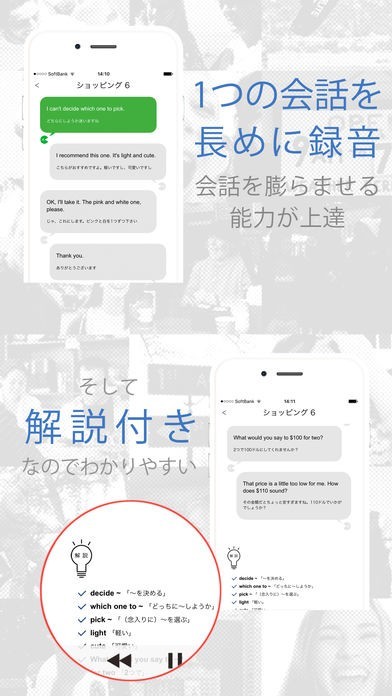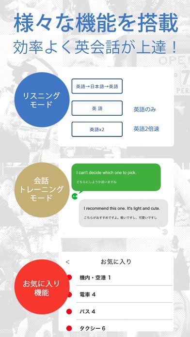 よく使う英会話はお気に入り登録をしておくことで、すぐに確認できます。会話一文が長く収録されており、それらの分かりやすい解説もついているので理解しやすくなっています。