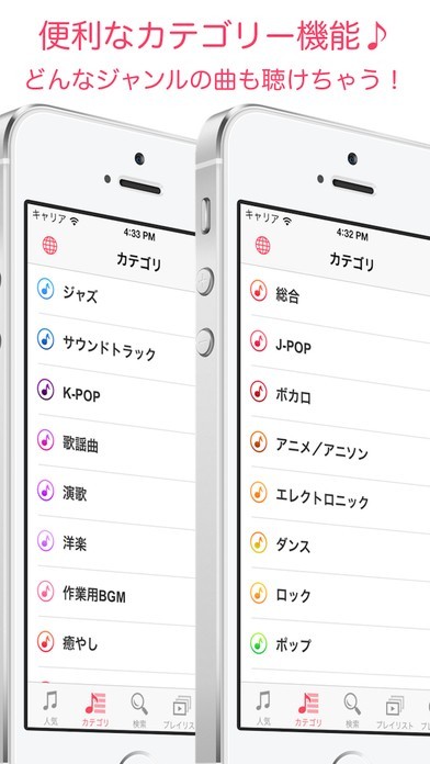 J-POPだけでなく、ボカロやアニソン、K-POPから作業用BGMまで、いろんなジャンルの音楽がカテゴリとして用意されています!きっとお気に入りの音楽やアーティストが見つかるよ!