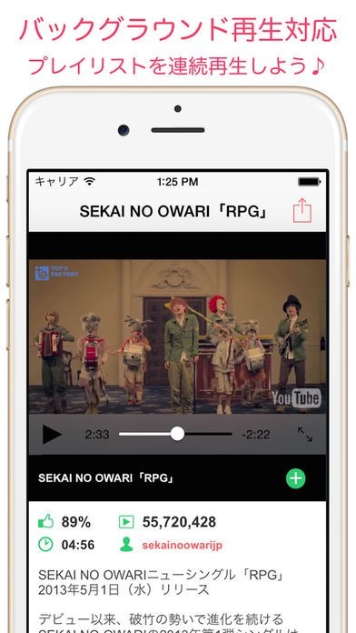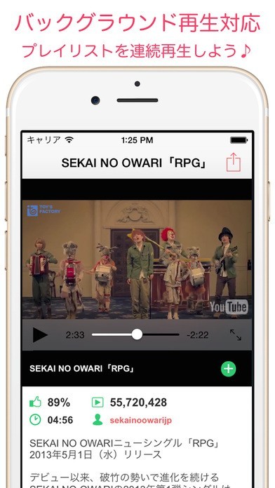 バックグラウンドでプレイリストを全曲再生もできるよ。