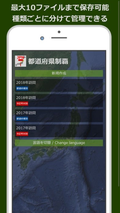 このアプリでは、各都道府県、各市町村にテキストで簡単なメモを書くことができるので、いつその都道府県を訪れたのか、どの交通手段を使って訪れたかなどの記録を残すことができます。