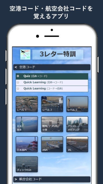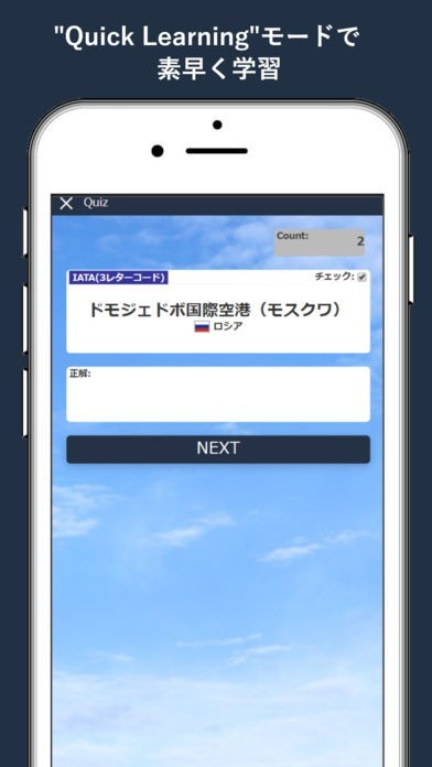 空港コードをランダムに出題していくので、数を多くこなせて覚えられるので助かっています。