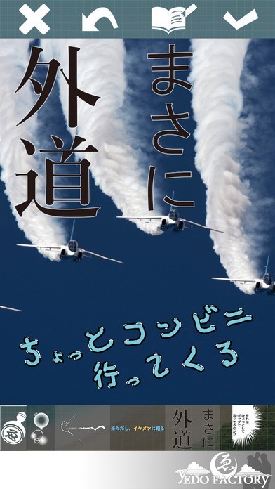 2chで話題になった伝説のプリクラ「チャリで来た」を誰でも簡単に再現できるカメラアプリです。