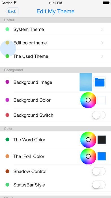 *You can control the background image and color, background animation, text color and shadow, switch interface animation , the number and the order of the main interface of the tab bar to create your learning software.