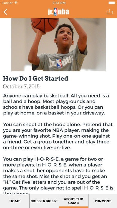 App Storeより引用The Jr. NBA App offers a fun and rewarding experience for all those participating in youth basketball, from kids to coaches, from officials to parents. The site features instructional videos and step-by-step guides to help young players improve their basketball skills. Children can learn about basketball history, rules, and terminology. New content will be constantly added, so check back often. Meanwhile, explore and enjoy!