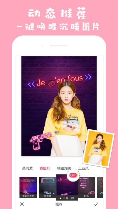 你可以把抠出来的人物以及小猫小狗,都一键保存成贴纸,成为今后的创作素材,和马卡龙提供的好玩动感贴纸一起使用