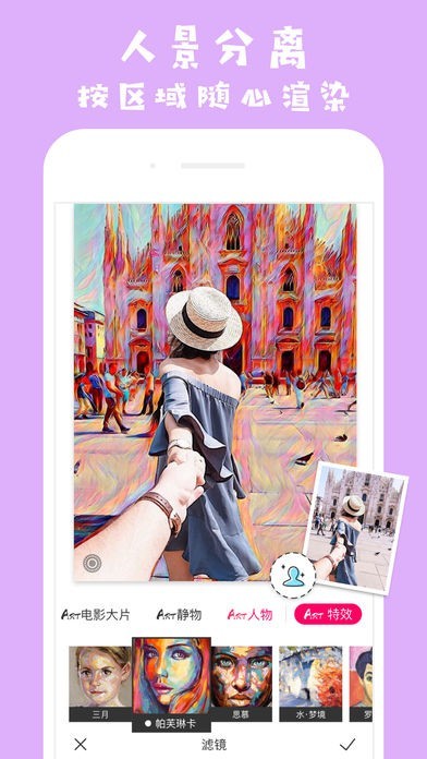 自动识别人与背景,一键背景变油画,让你真的「活」在名画里。火爆全网的油画风照片就出自马卡龙的魔法,让你畅游在梵高的《星空》里
