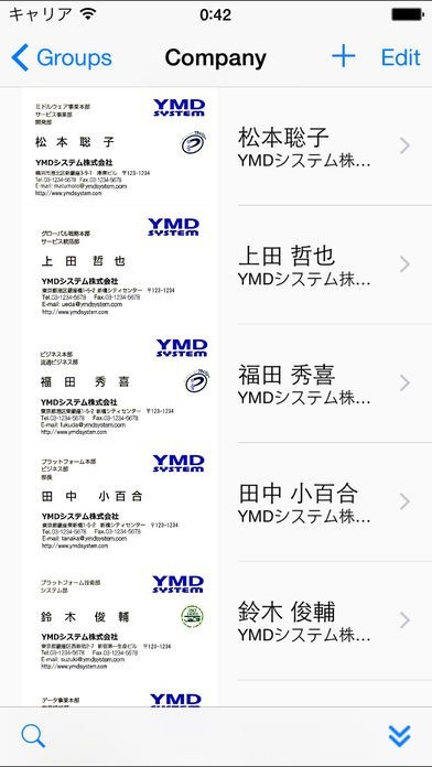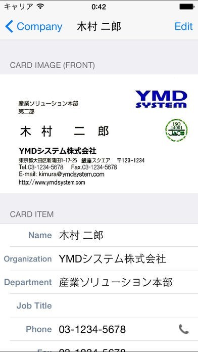 ・名刺情報画面からメール送信、電話コール、WEBサイト表示が可能です。