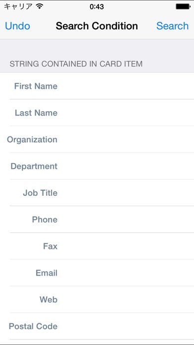 検索条件:氏名、組織、電話番号、登録日、ユーザ指定項目 等