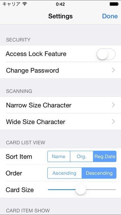カスタマイズ項目:ソート項目、表示順、カードイメージサイズ