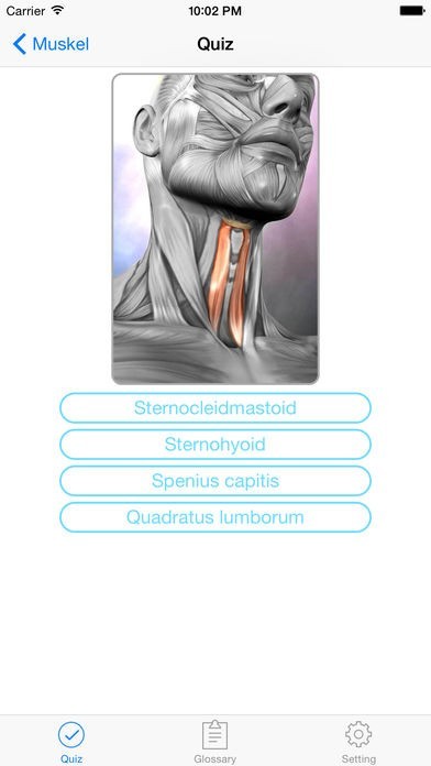 App Storeより引用Diese App ist ein Quiz um Ihre Kenntnisse der menschlichen Anatomie zu prüfen. Es kann für die Prüfung und Bildungszwecke für Menschen über die Anatomie gut informiert werden.