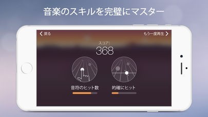 指板上に流れてくるしるしをタップして遊ぶリズムゲームです。知らない曲から有名な曲まで複数の曲があるので新しい発見と懐かしさを同時に感じながら楽しむことができます。