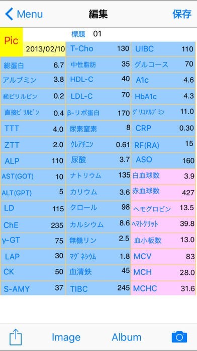 定期的に病院からもらって来る検査結果のデータをスマホで管理することが出来ます。また、今まで入力してきたデータを折れ線グラフで確認できるので検査結果の推移は項目ごとに一目で確認することが出来ます。